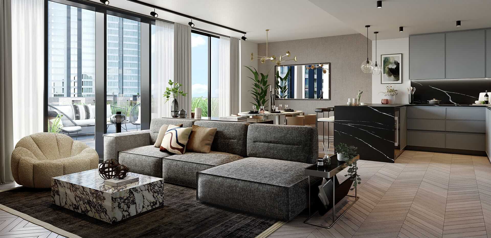 Located on the top floor of Siena and Vermont House are the 2 and 3 bedroom Luna apartments, many with expansive terraces and views over the beautifully landscaped gardens. The 2 bedroom Bollinder duplexes offer dual-level living, each with a private terrace and balcony facing the peaceful courtyard. All apartments benefit from a premium interior specification.