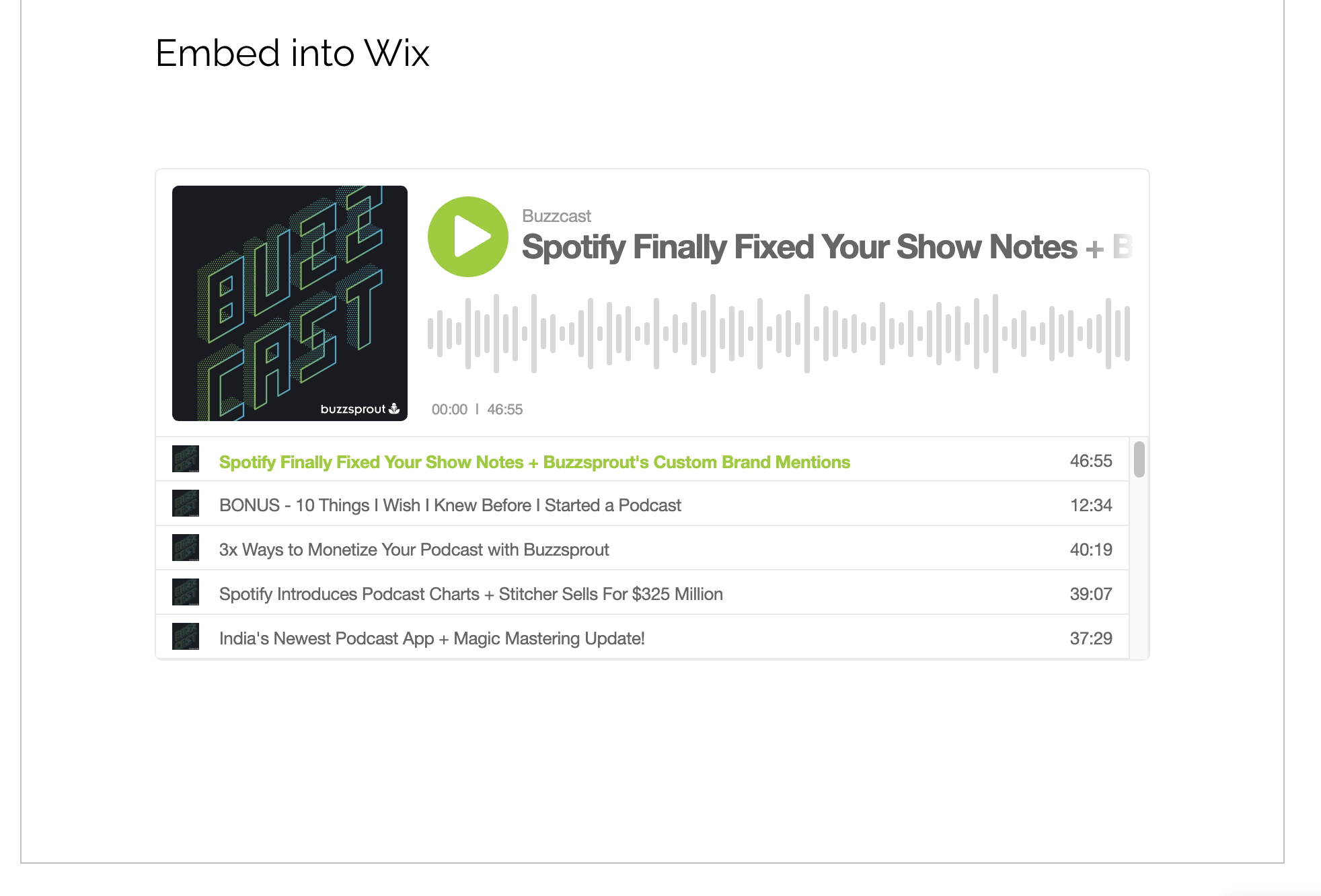 If you are hosting your website with Wix, you can easily add your episodes to your posts by using Buzzsprouts embed players. Check out these steps to get your episodes embedded into your website!