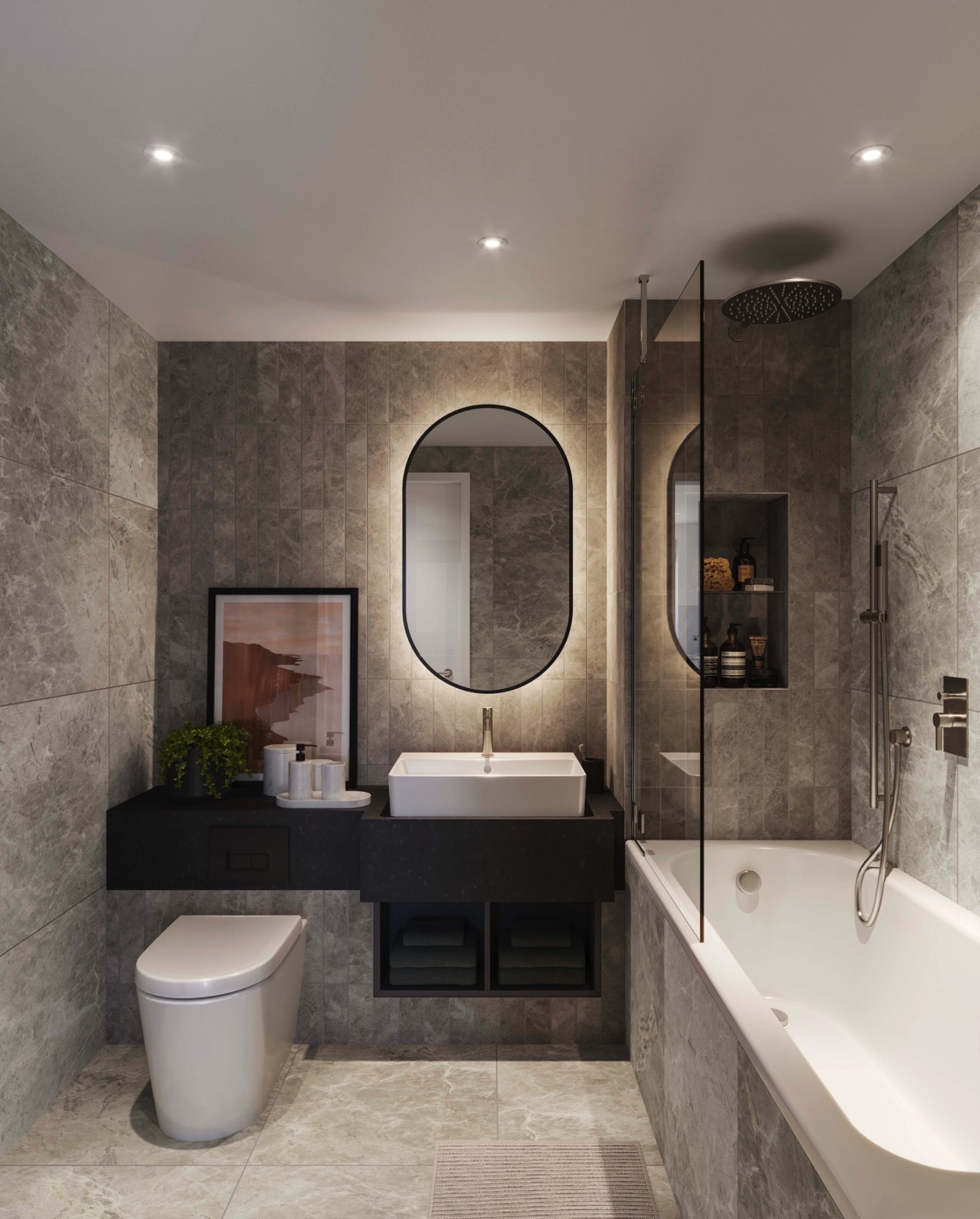 - Private outdoor space with park or podium garden views